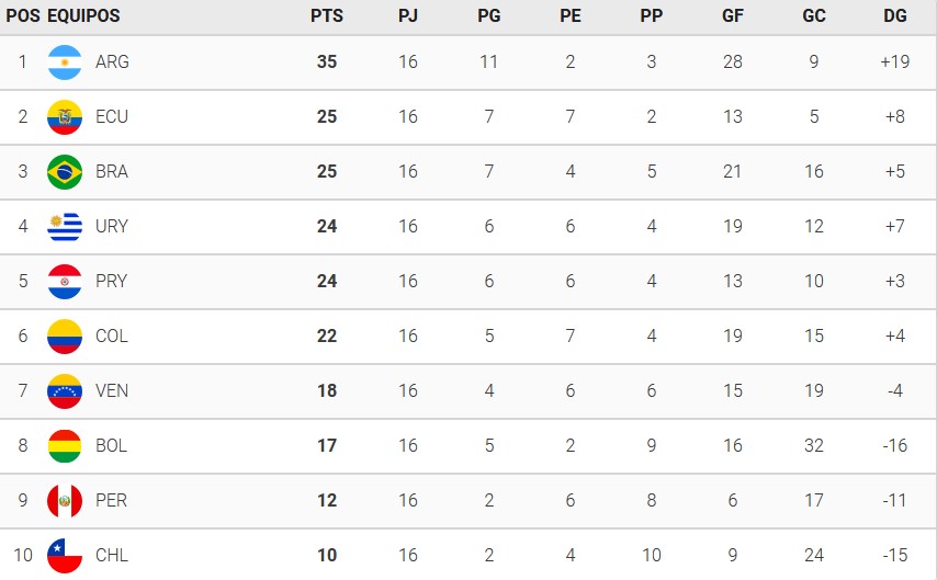 EL CRONOGRAMA DE LAS ÚLTIMAS DOS JORNADAS DE LAS ELIMINATORIAS SUDAMERICANAS
