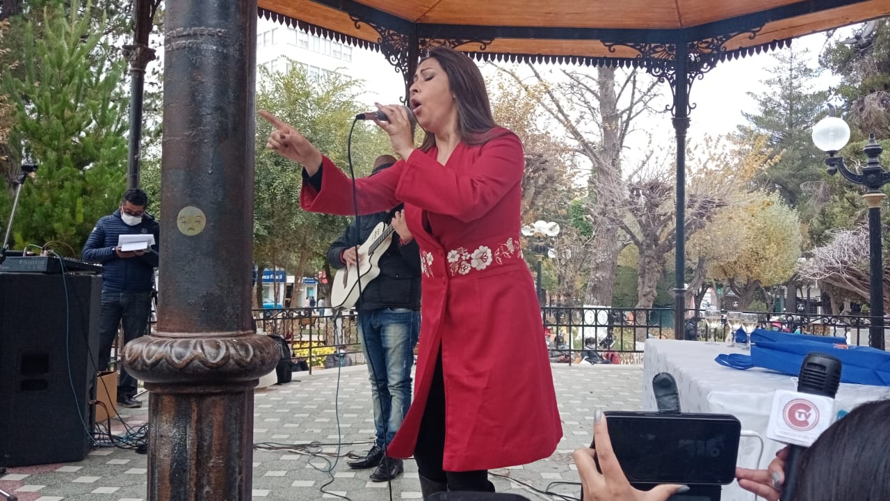 Esther Marisol le cantó a Oruro en la plaza 10 de Febrero