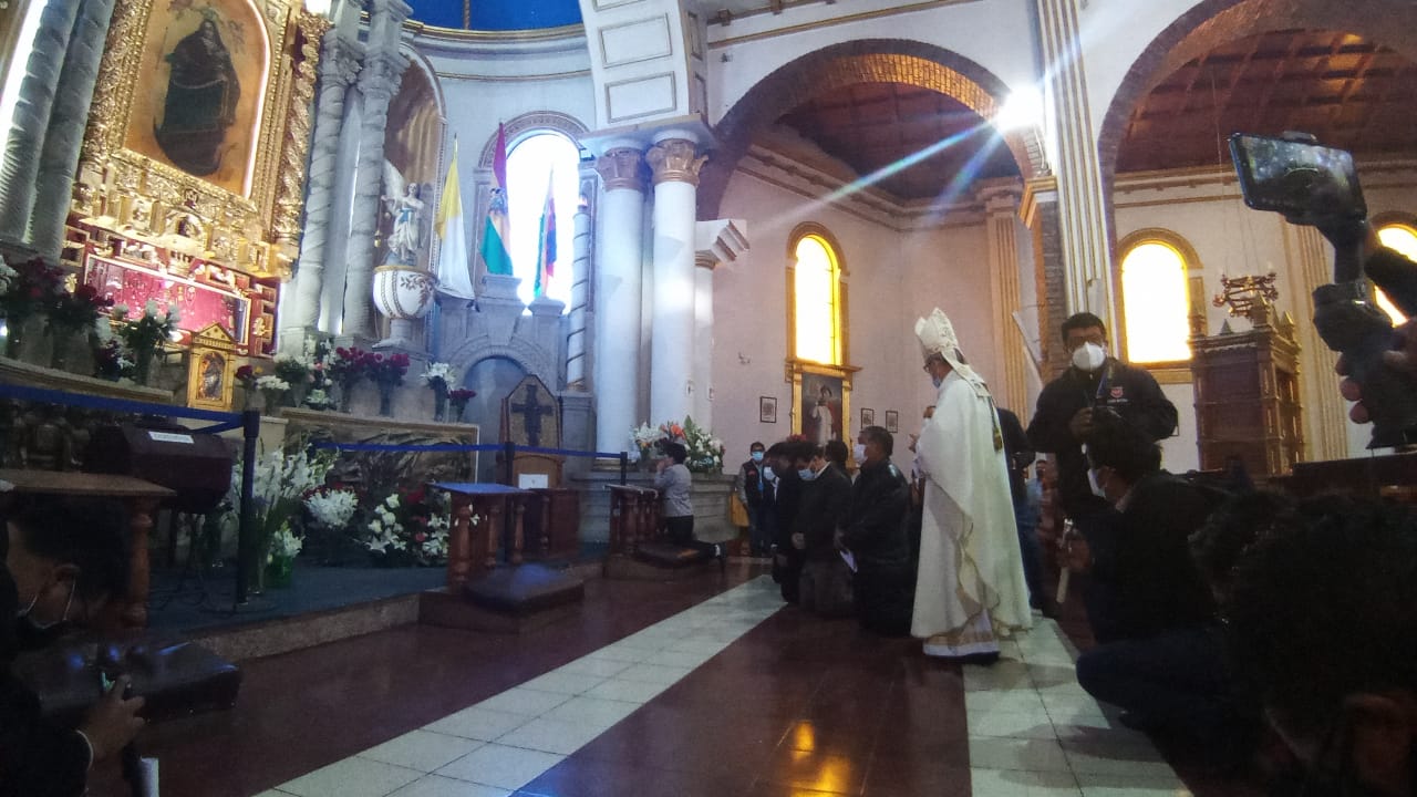 Autoridades se arrodillaron ante la Virgen del Socavón