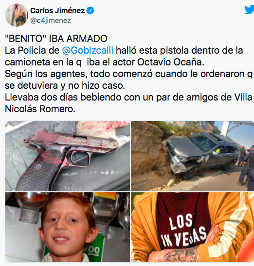Por su parte, el periodista Carlos Jiménez reportó, también a través de su cuenta de Twitter, que Ocaña iba en una camioneta con dos amigos y armado con una pistola. Los tres individuos llevaban "dos días bebiendo". La policía le habría ordenado detenerse, pero Ocaña no lo hizo y comenzó una persecución.