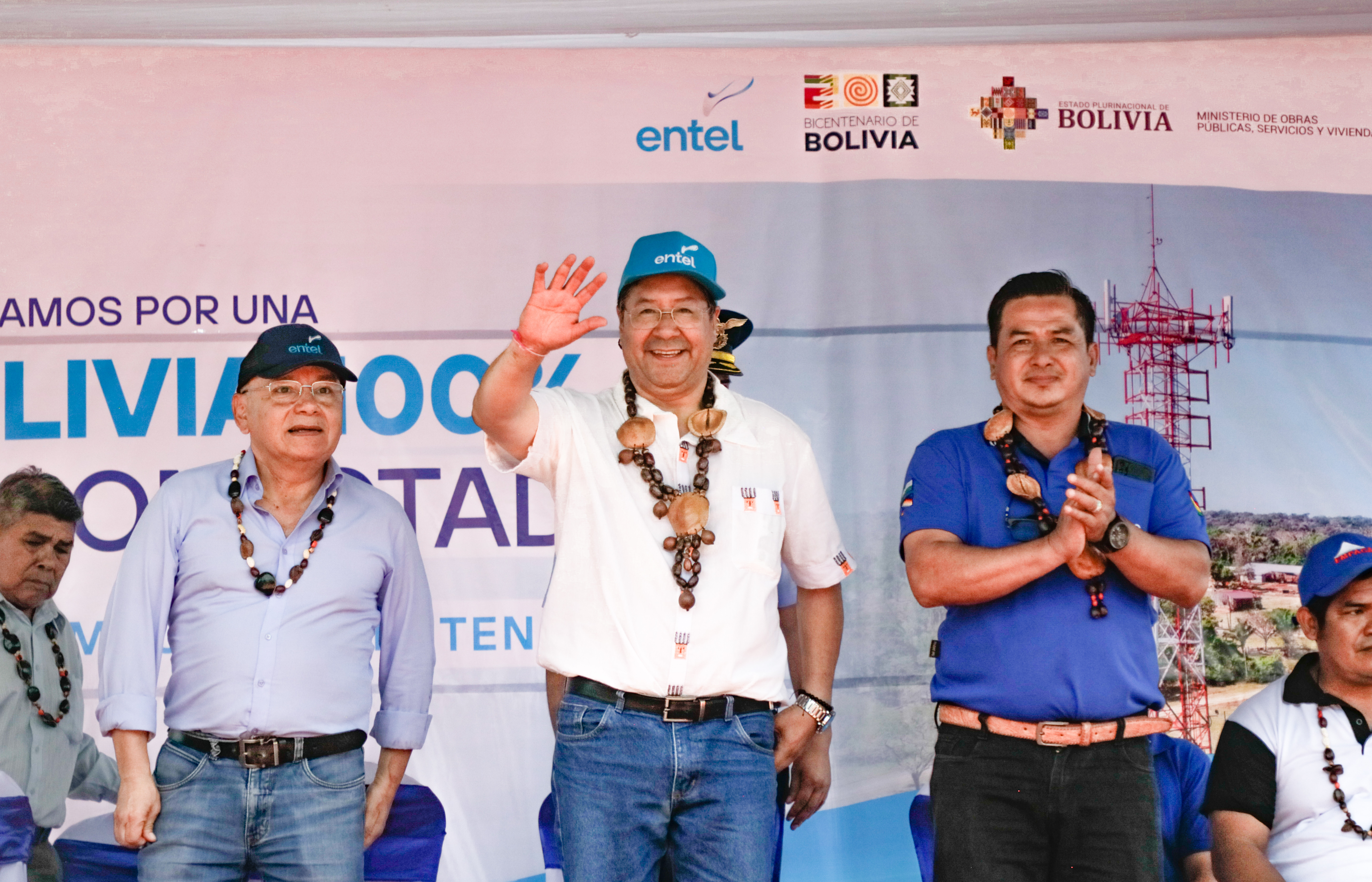 Por una Bolivia 100% conectada rumbo al Bicentenario, el presidente Luis Arce Catacora entregó este martes estaciones Radio Base desplegadas por la Empresa Nacional de Telecomunicaciones (ENTEL S.A.) para beneficiar a siete localidades del municipio Sena del departamento de Pando con Telefonía Móvil e Internet de última generación.