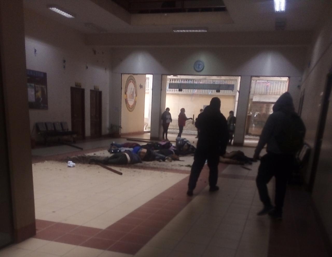 Los cuerpos de varios estudiantes quedaron en el piso, varios sin vida y otros heridos que fueron auxiliados por la Policía y evacuados a centros de salud de la ciudad de El Alto.