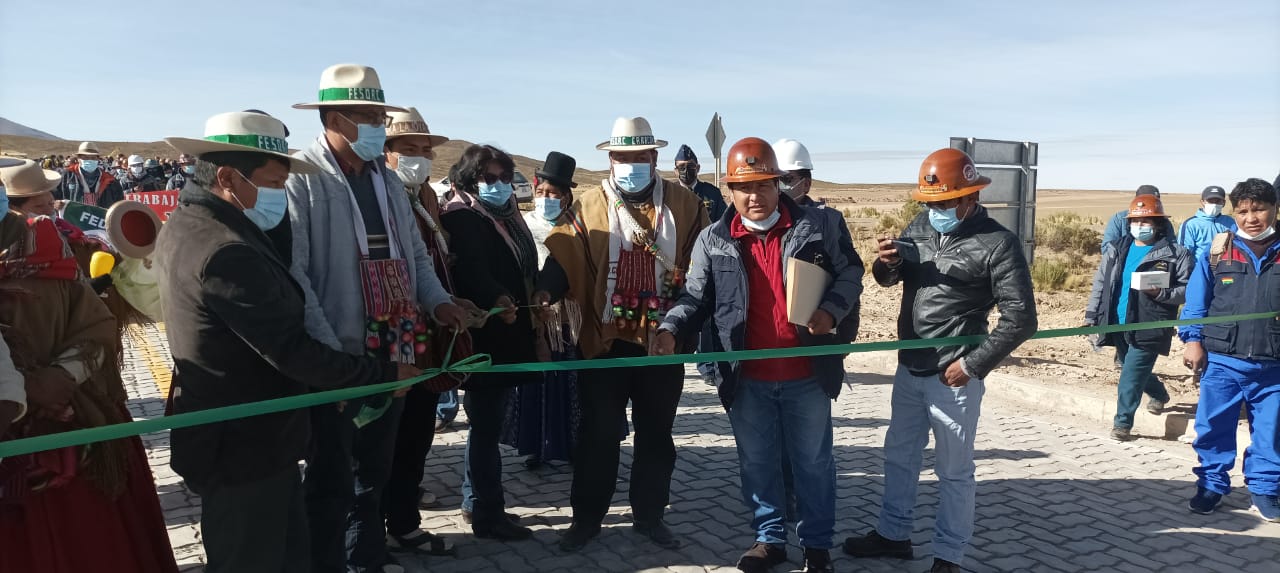 La entrega del adoquinado se efectuó los pasados días en presencia del alcalde municipal de Caracollo Justo Ventura, autoridades departamentales, originarias, directorio y trabajadores mineros de Emcoisa de La Joya.