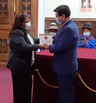 El Colegio Médico de Oruro, a través de su presidenta, Ruth Frías entregó un reconocimiento al gobernador por su gestión realizada, pues también se destacó en el área de salud, habiendo invertido en la lucha contra la pandemia, habiendo adquirido plantas de oxígeno, también posibilitó la apertura de farmacias con medicamentos a costos accesibles e impulsado la vacunación.
