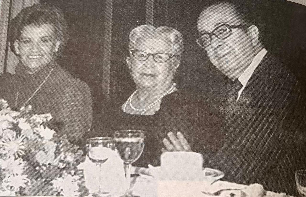 Con su madre, Doña "Becha", y con la expresidenta de Bolivia y entonces embajadora de Colombia, Lidia Gueiler, en la cena de homenaje que le brindó la colonia boliviana en Bogotá (Foto Memorias de una Victoria)