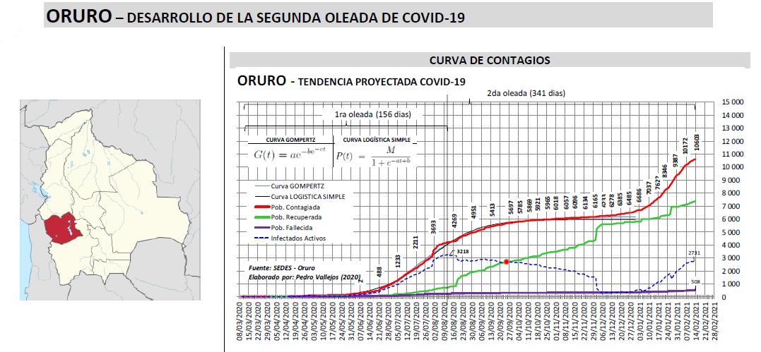 El miembro del Comité Científico Covid-19 de la UTO, Pedro Román Vallejos Mamani, publicó que se reporta, que la velocidad de contagios de la segunda oleada es de dos a tres veces más rápido a la primera oleada.
