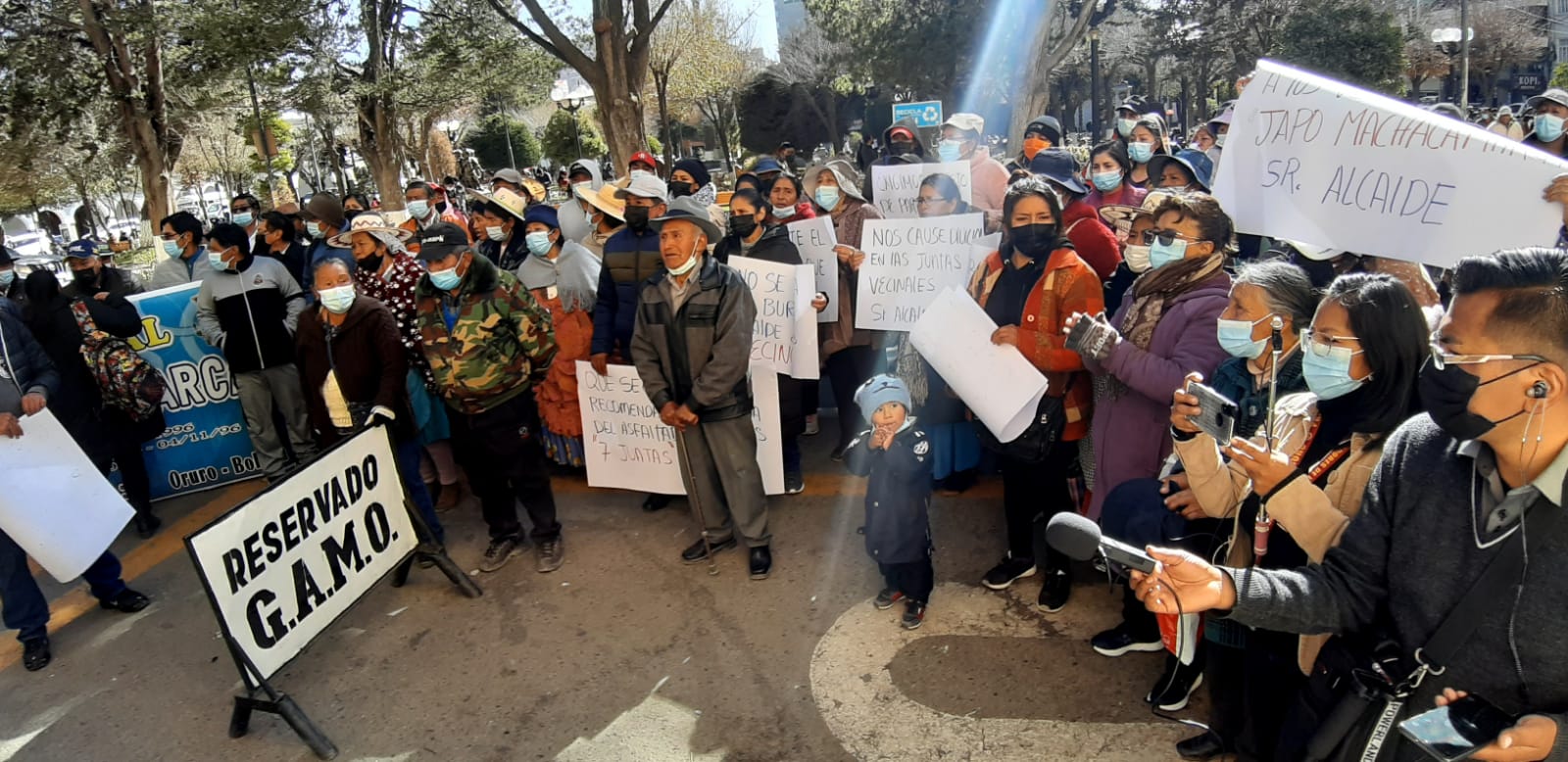 Una manifestación se concentró en exteriores del edificio principal del Gobierno Municipal de Oruro, los protagonistas fueron vecinos de la junta vecina Japo Machacamarca, quienes pedían que el asfaltado de esa zona inicie en su sector, esto porque desde la Alcaldía se anunció que iniciarían los trabajos en otro lado, lo que provocó la molestia porque aseguran que ya existía el compromiso del alcalde Adhemar Wilcarani de iniciar en su sector.