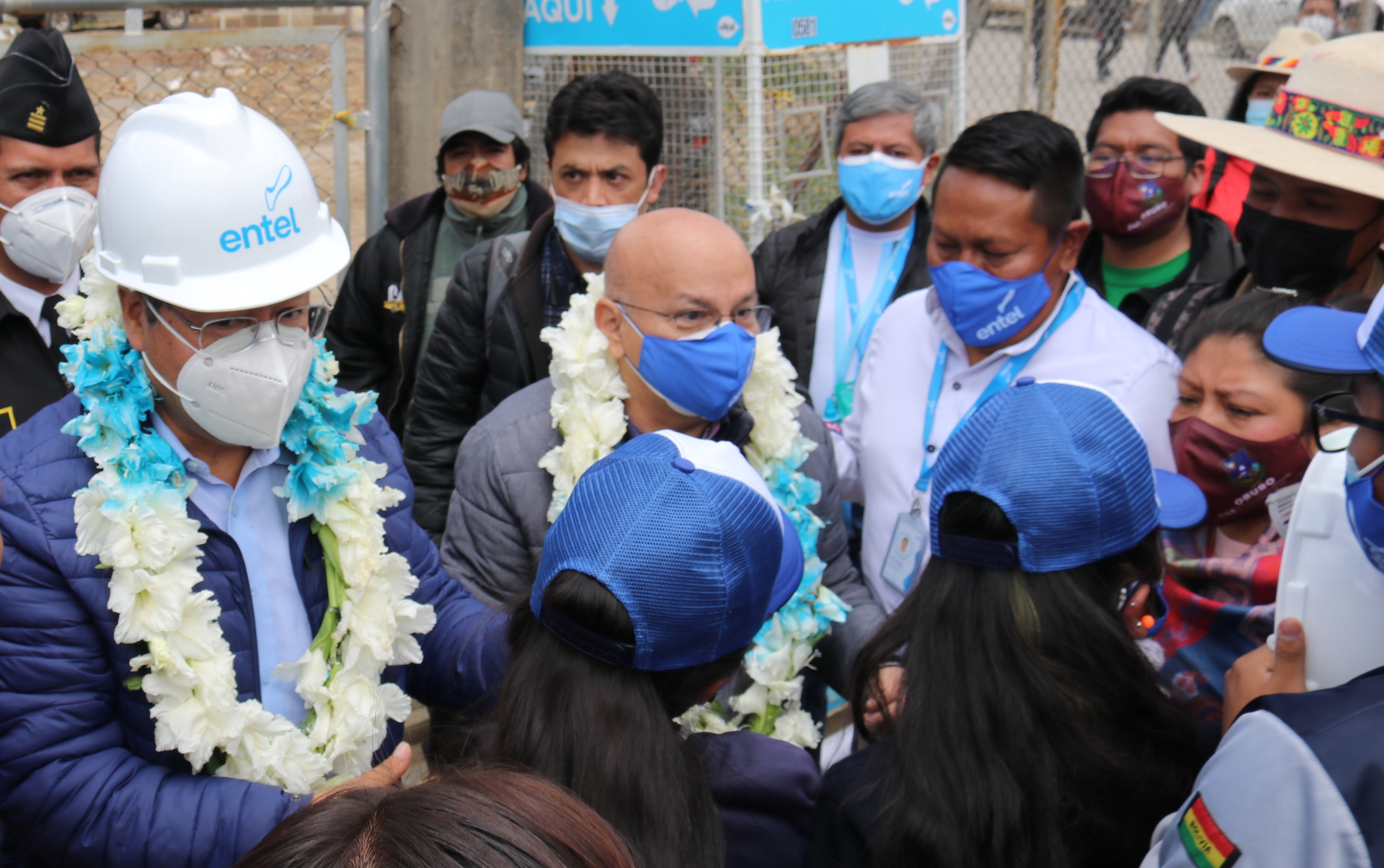 Durante el acto de inauguración, el Presidente Arce Catacora instruyó a ENTEL instalar nuevas estaciones Radio Base en Oruro y en otras regiones del país con la finalidad de mejorar el servicio de telecomunicaciones.
