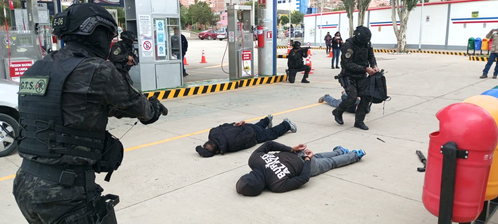 El ejercicio comprendió tres etapas: capacitación teórica, práctica dirigida a los administradores, operadores y personal de la estación de servicio y durante esta jornada se plasmó en el simulacro como tal. El objetivo tanto para el personal de YPFB y la policía es que estén capacitados para enfrentar situaciones de robo y atracos.
