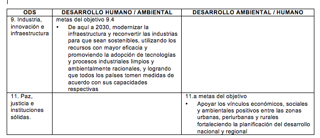De la misma manera podemos establecer una serie de articulaciones entre los ODS 9: de la industria, innovación e infraestructura (medioambiental) y 11: paz, justicia e instituciones sólidas que, aunque parezcan distantes, se encuentran co-implicados, leamos: