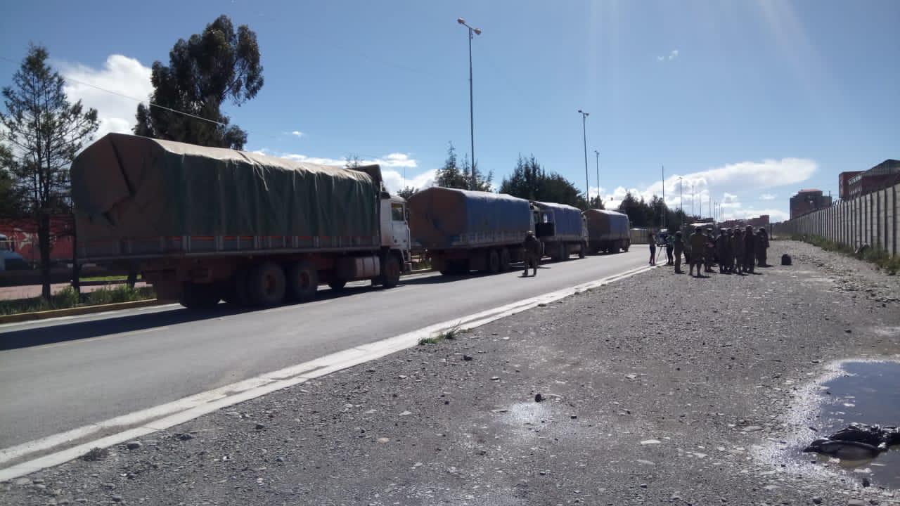 Los camiones escoltados por el Ejército