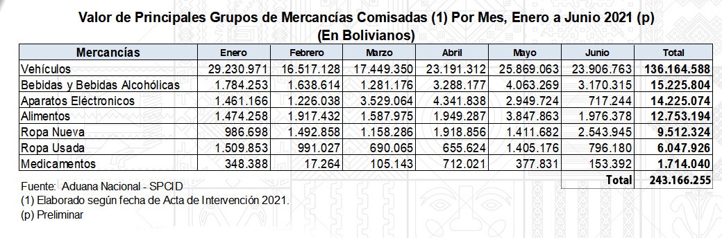 El departamento de Oruro es la región que presenta mayor incidencia de ilícitos de contrabando en todo el país, de acuerdo a registros emanados por la Aduana Nacional. Una evaluación de los primeros seis meses del 2021, destaca que la afectación al contrabando en Bolivia supera los 243 millones de bolivianos, de los que algo más de 111 millones corresponden a casos registrados en Oruro.